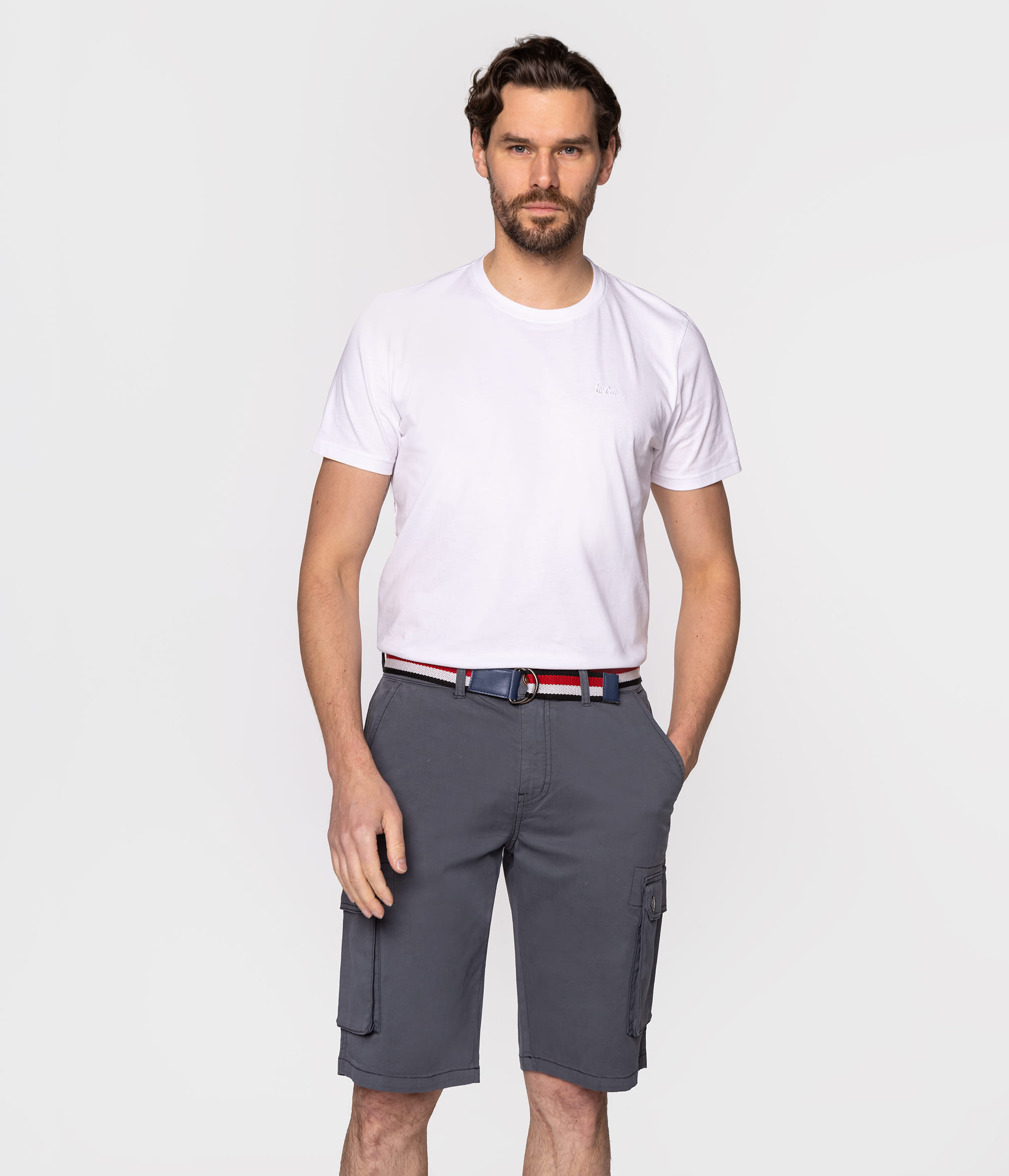 Удобные шорты из хлопка с добавлением стрейча, что обеспечит комфорт при носке. Они станут идеальным решением для весенних и летних поездок на природу или семейного отдыха. Застёжка на молнию и пуговицу спереди. Два открытых кармана спереди, один сбоку на кнопках и один сзади на пуговице. Вы не можете пропустить их в своем гардеробе. Наша модель ростом 186 см и носит 32 размер. Несколько цветов на выбор: black, medieval blue, azure blue, navy, grisaille, stormy weather, heritage blue, ancient scroll, alloy.