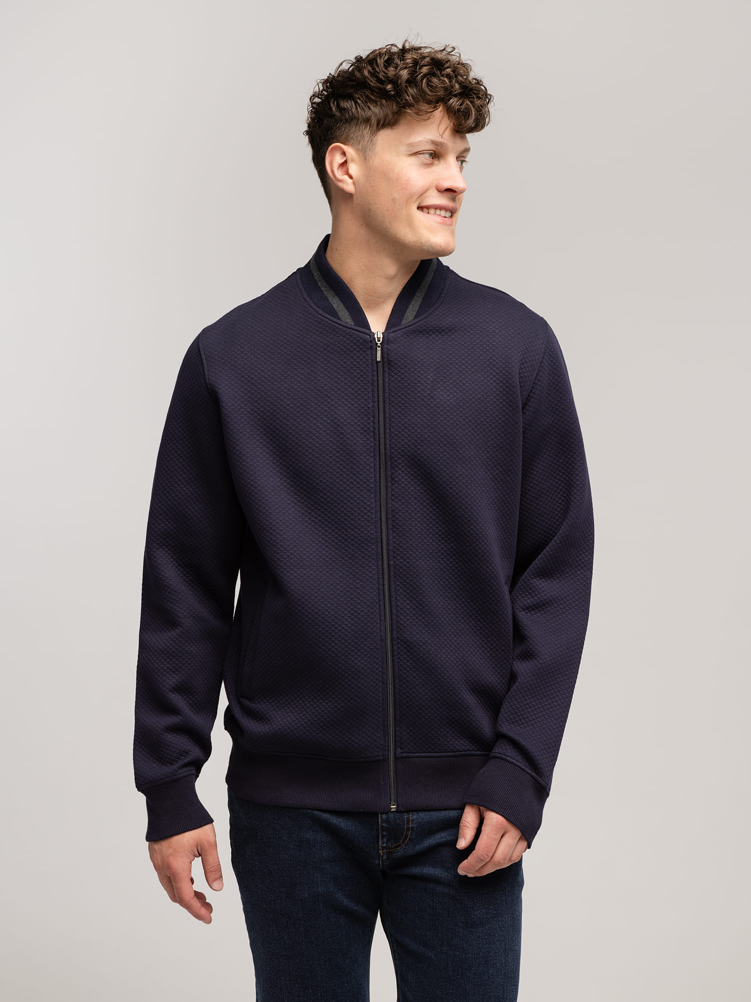 Мужская толстовка HUAN 5164 тёмно-синяя — современный стиль и функциональность, на молнии с небольшим воротником-стойкой и двухцветным вырезом. Она также имеет два практичных кармана и ребристые манжеты. Сотовая структура материала придаёт ей уникальный характер и обеспечивает долговечность.
