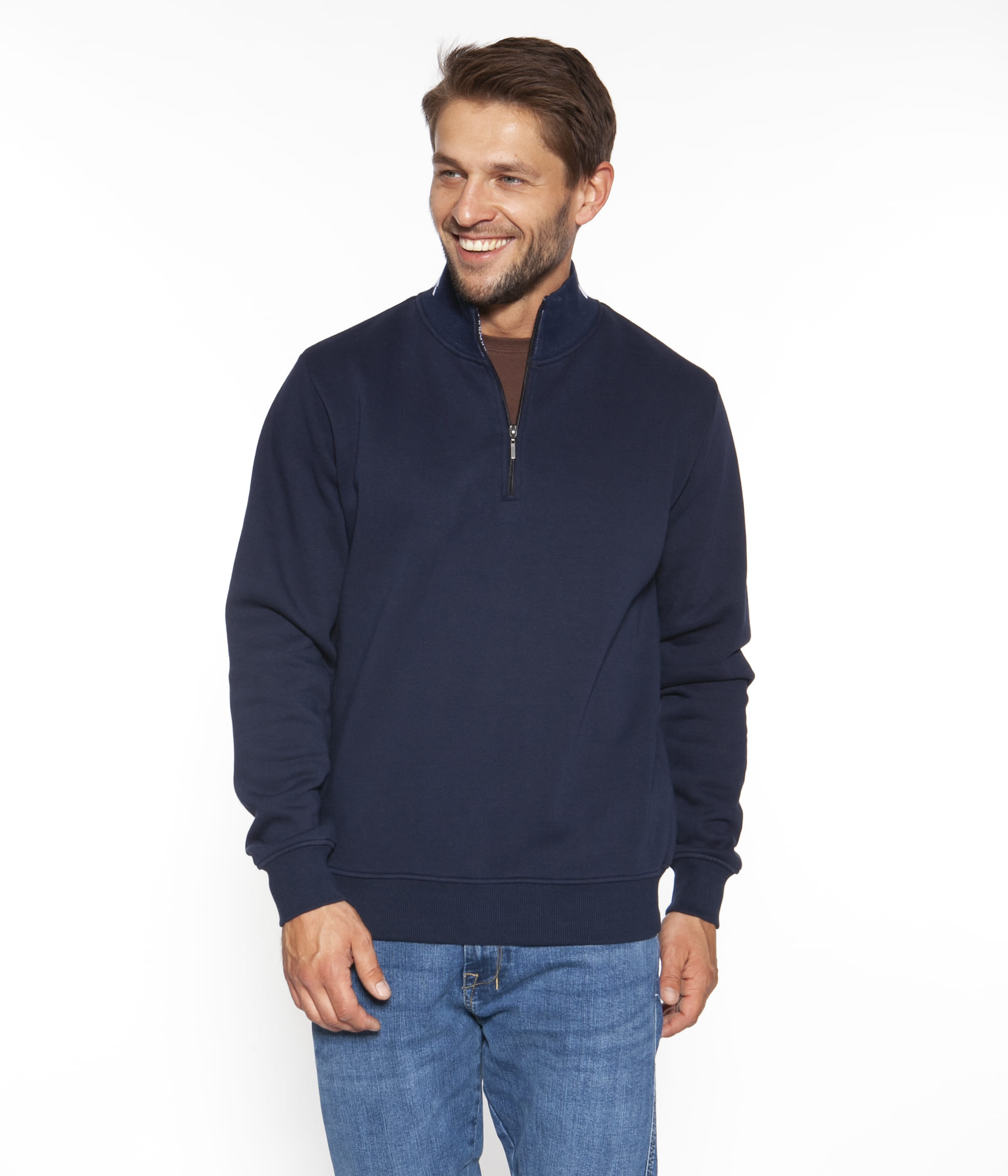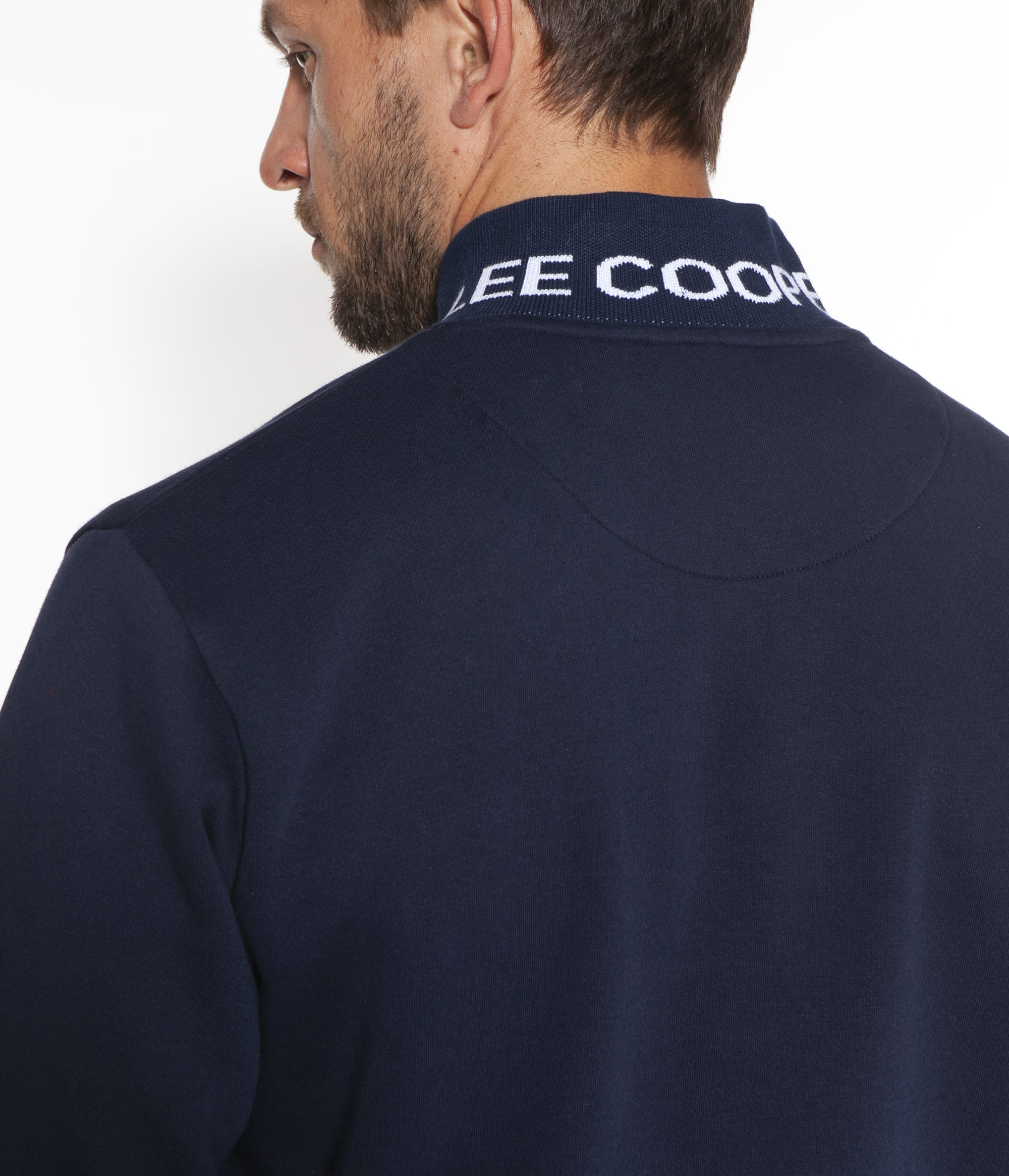 Мужской синий свитшот с воротником-стойкой и застёжкой на молнию на шее. Надпись LEE COOPER на воротнике.